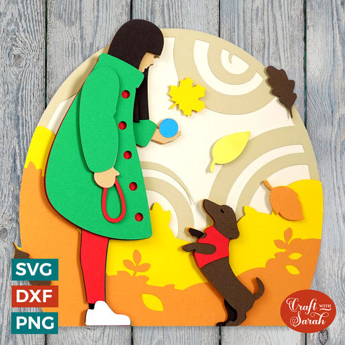 Autumn Girl with Dachshund SVG | Layered Dog Walking Cut Files