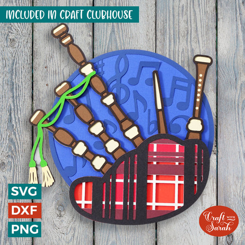 Bagpipes SVG | 3D Layered Scottish Bagpipes Cutting File