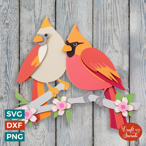 Cardinal Pair SVG | Male & Female Cardinal on Blossom Branch Cutting File