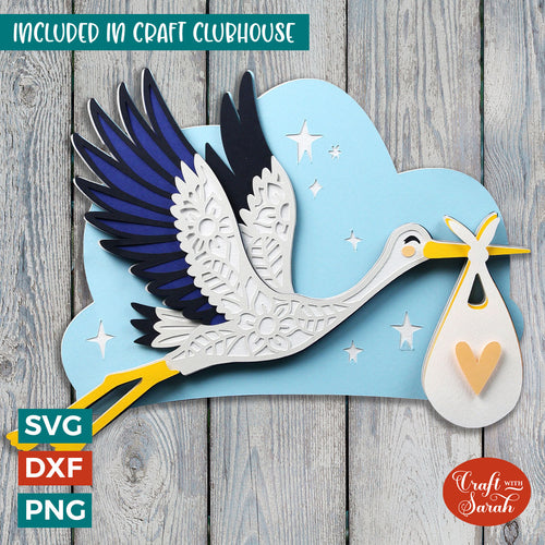 Baby & Stork SVG File | Layered New Baby Stork Cutting File