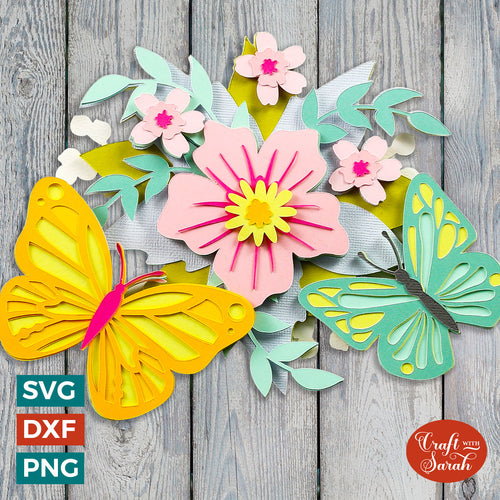 Butterflies SVG File | Layered Butterfly & Flowers Cutting File