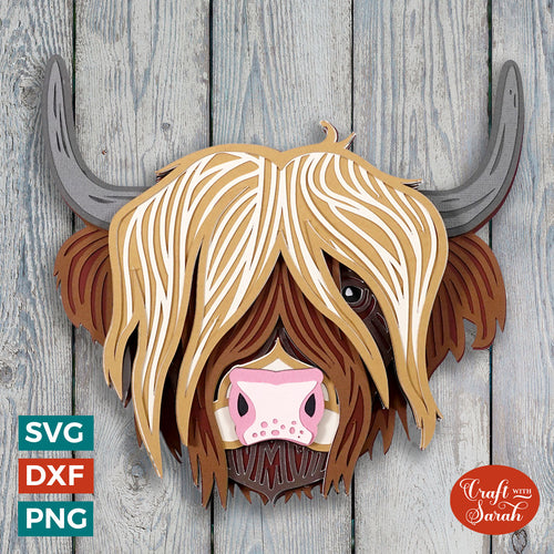 Highland Cow Mandala Head SVG | Layered Highland Cow Mandala Head Cutting File