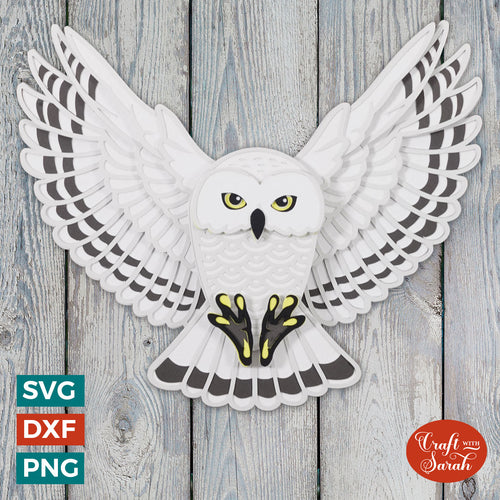 Snowy Owl SVG | Layered Owl in Flight SVG