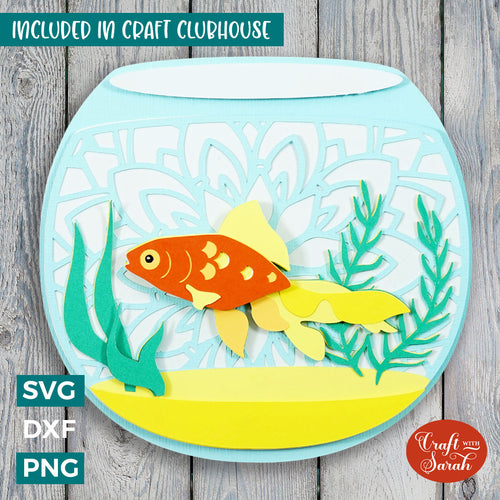 Goldfish In Bowl SVG | 3D Layered Goldfish In Tank Cutting File