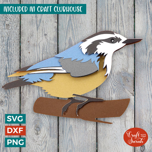 Nuthatch Bird SVG | Layered Nuthatch Bird Cutting File