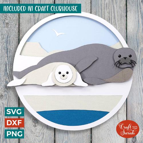Seal Mother & Baby SVG | 3D Layered Seal Pup Cutting File