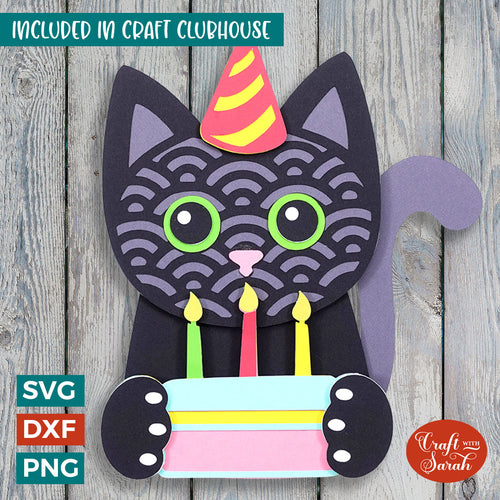 Birthday Cat SVG | 3D Layered Celebratory Party Cat Cutting File