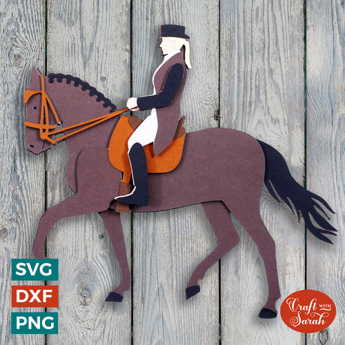 Dressage Rider SVG | 3D Layered Female Dressage Horse and Rider Cutting File