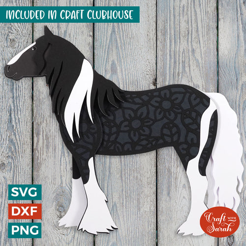 Irish Cob Horse SVG | 3D Layered Piebald Horse Cutting File