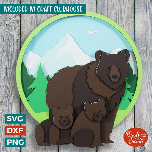 Brown Bear With Cubs SVG | 3D Layered Brown Bear Family Cutting File
