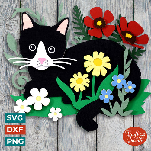 Cat in Wildflowers SVG | Layered Kitten in Flowers Cutting File