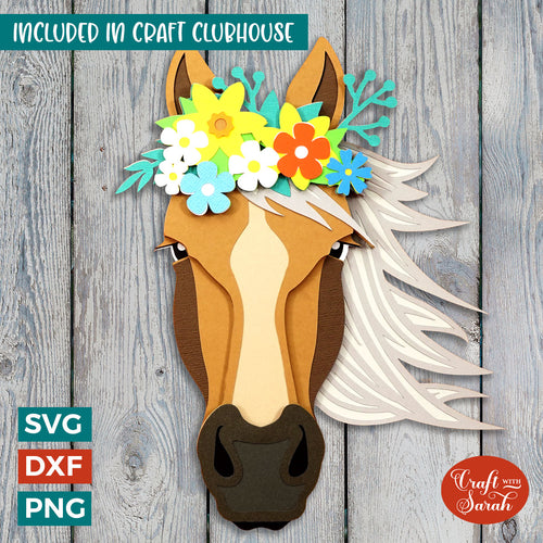 Horse Head Flowers SVG | 3D Layered Horse Flower Crown Cutting File