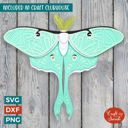 Lunar Moth SVG | 3D Layered Lunar Moth Insect Cutting File