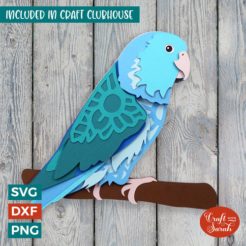 Quaker Parrot SVG | 3D Layered Monk Parakeet Cutting File