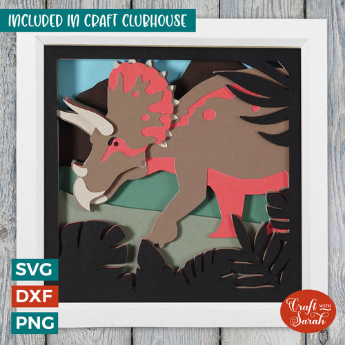 Triceratops SVG | Layered Dinosaur Shadow Box SVG