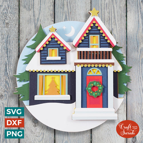 Winter Cottage Shadow Box | Winter Hygge Scene Cutting File