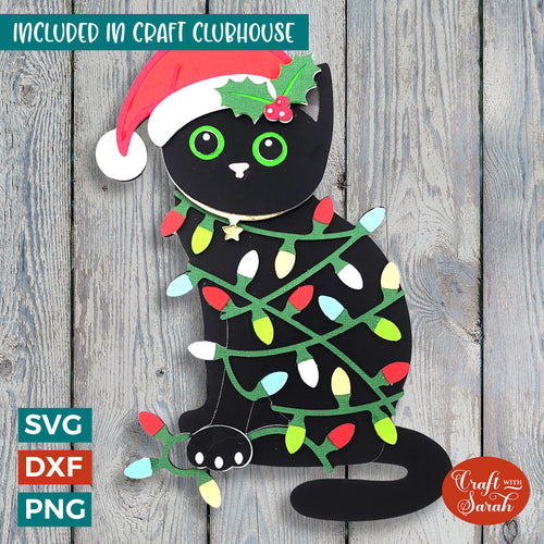 Christmas Cat in Lights SVG | 3D Layered Festive Cat Cutting File