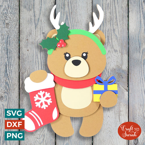 Christmas Teddy SVG | 3D Festive Female Teddy Bear Cutting File