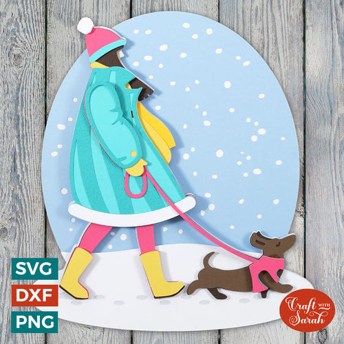 Winter Dog Walk SVG | Layered Dachshund Dog SVG