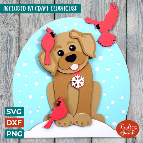 Cardinals with Dog SVG | Layered Christmas Dog Cutting File