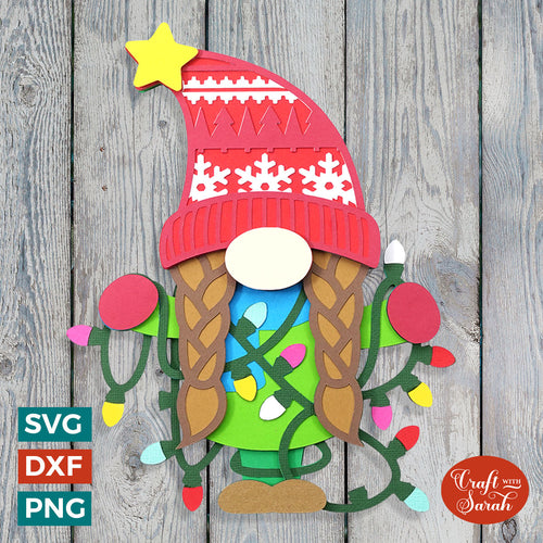 Christmas Lights Gnome SVG | Festive Female Gonk Cut Files