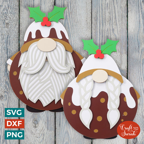Christmas Pudding Gnome SVGs | Festive Male & Female Gonk Cutting Files