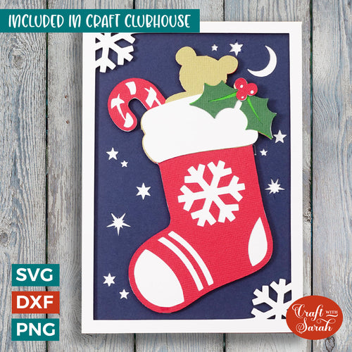 Christmas Stocking Card SVG | Layered Festive Stocking Greetings Card
