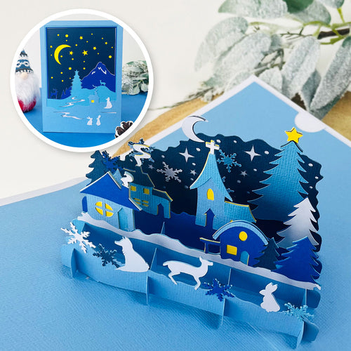 Blue Christmas Scene Layered Card Cut File | CCC23