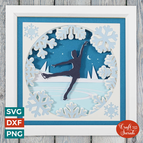 Ice Skating Shadow Box | Winter Ice Skater Cutting File