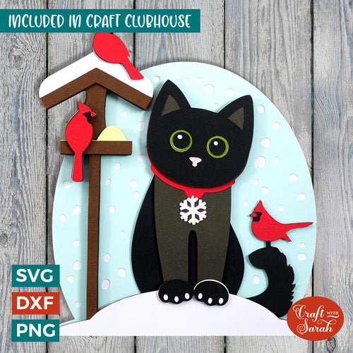 Cardinals with Cat SVG | Layered Christmas Cat Cutting File