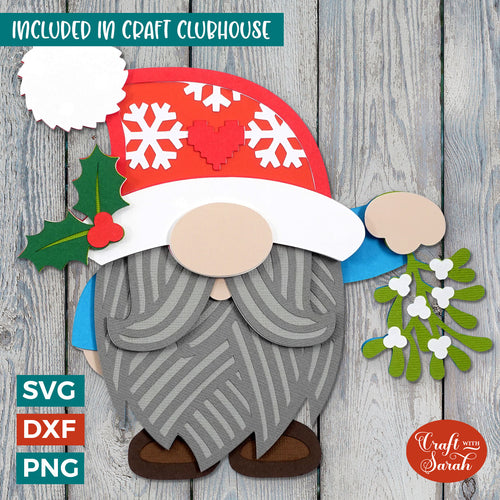 Mistletoe Gnome SVG | Layered Male Festive Christmas Gonk Cutting Files