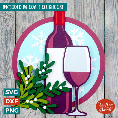 Mistletoe and Wine SVG | Layered Festive Christmas Drink Cutting File