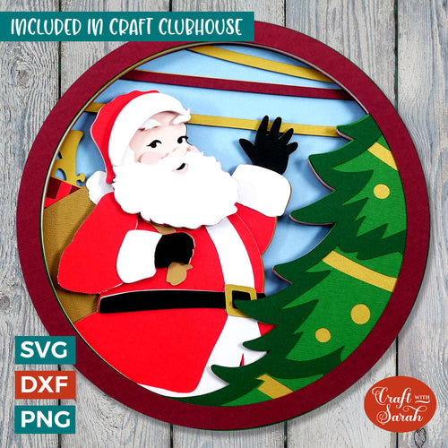 Santa Circular Scene SVG | Layered Father Christmas Cutting File