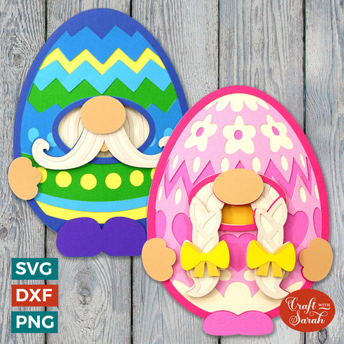 Pair of Easter Egg Gnome SVGs | Layered Easter Gonk Cut Files
