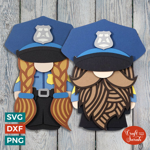 Police Gnome Pair | Layered American Cop Gnome SVGs