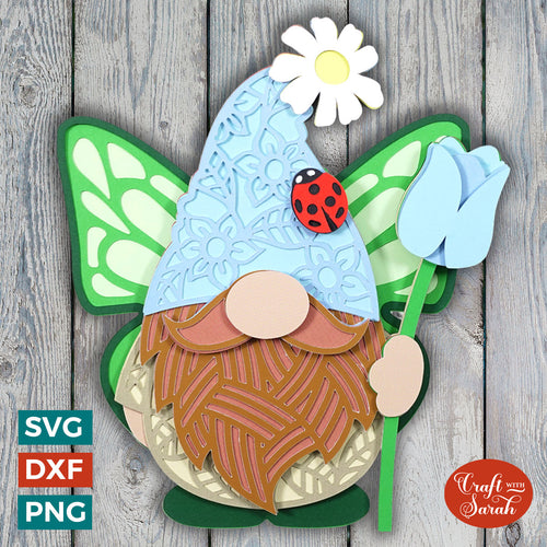 Butterfly Gnome SVG | Layered Male Butterfly Gnome SVG