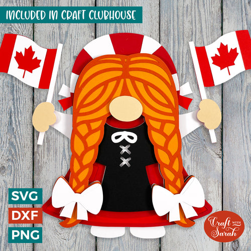 Canada Day Gnome SVG | Layered Female Canadian Gnome Cutting File
