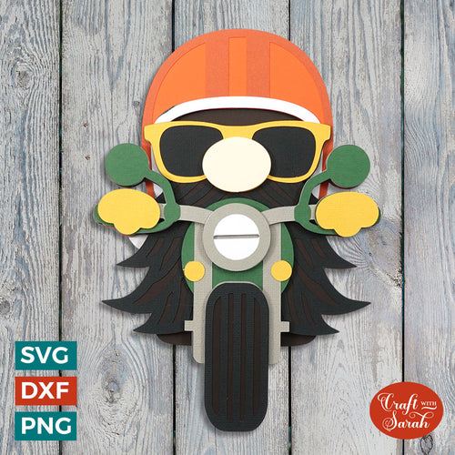 Motorbike Gnome SVG | Layered Male Classic Motorbike Rider Gnome Cut File