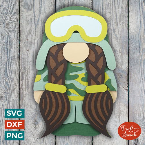 Soldier Gnome SVG | Female Soldier Gnome Cut File