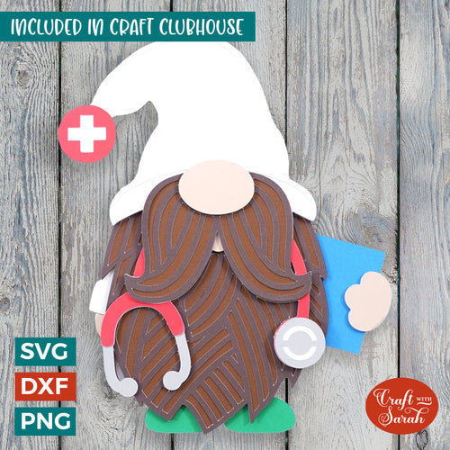 Doctor Gnome SVG | Layered Male Medical Doctor Gnome Cut File