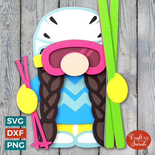 Winter Sports Gnome SVG | Layered Female Snow Sport Gonk Cut Files