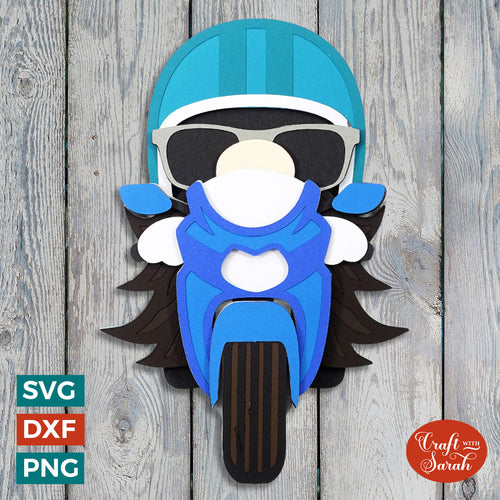 Sports Motorbike Gnome SVG | Layered Male Motorbike Rider Gnome Cut File