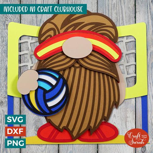 Volleyball Gnome SVG | Layered Male Sport Gnome Cutting Files