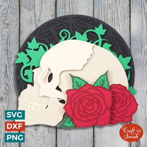 • Skull with Roses SVG | Layered Halloween Skull Cutting File