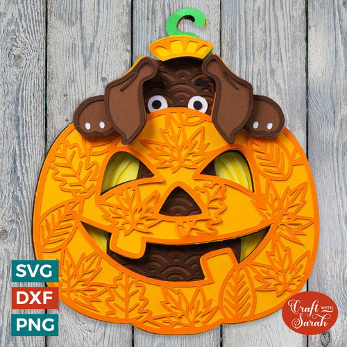 • Halloween Dog in Pumpkin SVG | 3D Peeking Puppy SVG