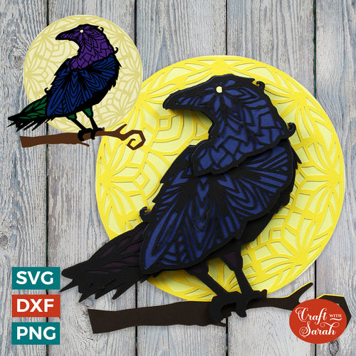 • Gothic Raven Layered SVG | 3D Halloween Raven SVG