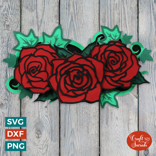 • Gothic Roses Layered SVG | 3D Rose Flowers SVG