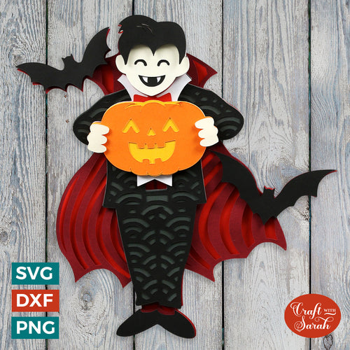 • Halloween Vampire SVG | 3D Little Vampire with Pumpkin SVG