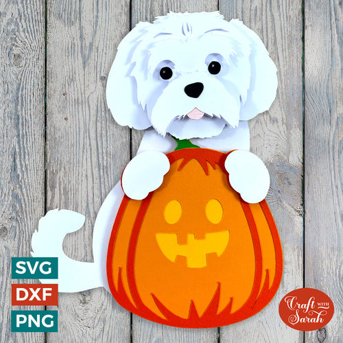 • Maltese Pumpkin SVG | Small Fluffy Dog Pumpkin for Halloween