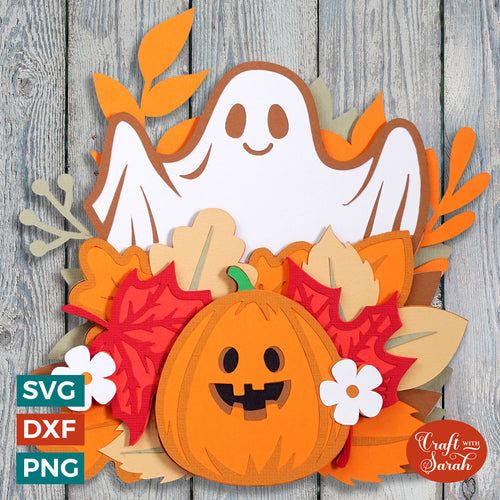 Ghost with Leaves SVG | Layered Fall Ghost Cut Files